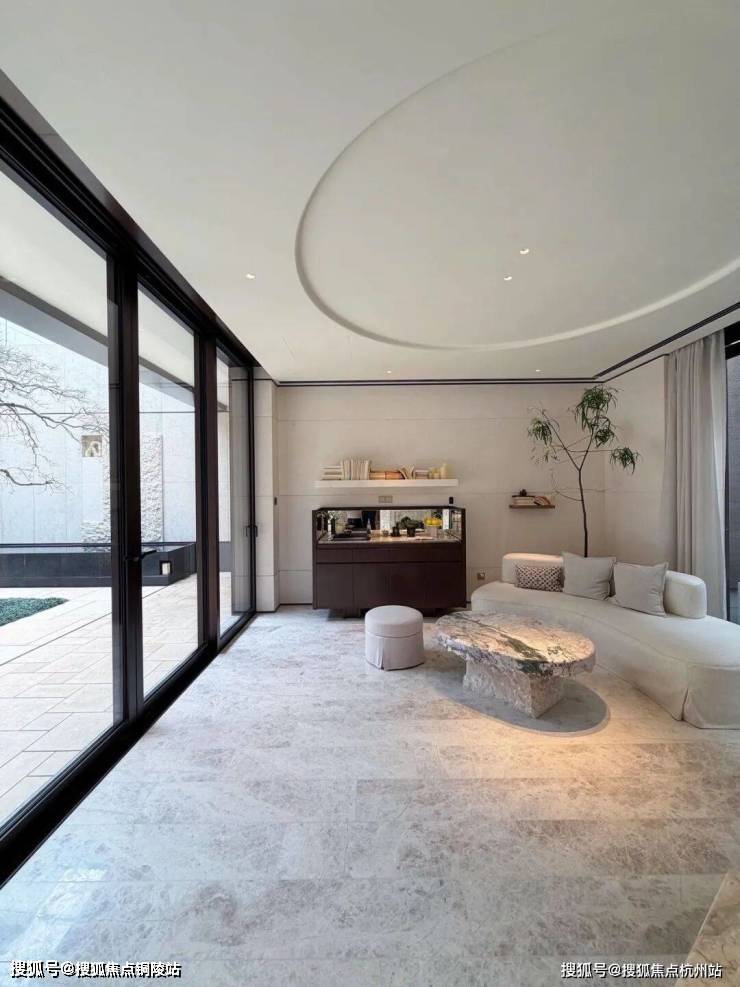 契合中国传统院落居住哲学理念,以“外紧内松”空间设计手法,对风貌别墅空间尺度进行当代拓新,让空间服务于生活。外紧-通过外部百年巷道肌理活化、建筑错落排布景筑交融,打造美而精的体验;内松-宅院内以多重庭院、立体花园、大落地窗等实现室内尺度拓新,给家人更多停留空间、打造建筑会呼吸的松弛感。