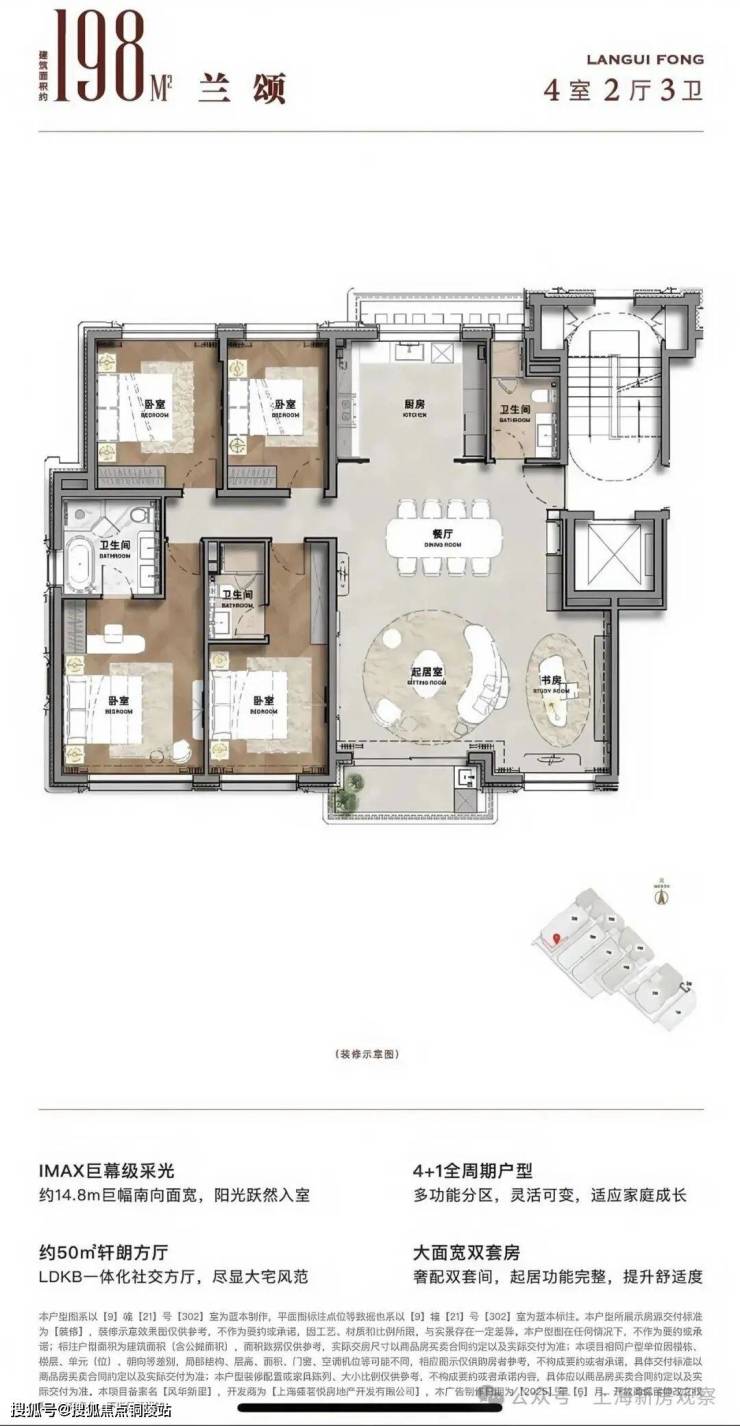 据悉「蘭桂坊855」首推12套建面约81-170㎡新建公寓;8月30日已过会均价11.7万/㎡!33席传世宅邸,一席一定制,一栋一永恒,其中18套建筑面积约89-174-198㎡洋房,15席约180-240m²新城市别墅,敬邀全球藏家私赏。建筑面积约198m²4房2厅3卫【海派法式美学样板】现已惊艳亮相共迎品鉴!