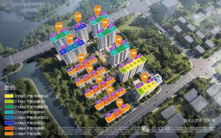 根据设计方案显示,项目拟建8栋16-17层高层住宅(含1栋17层保障房),以及5栋6层多层住宅,共计673户,可售房源约624户。