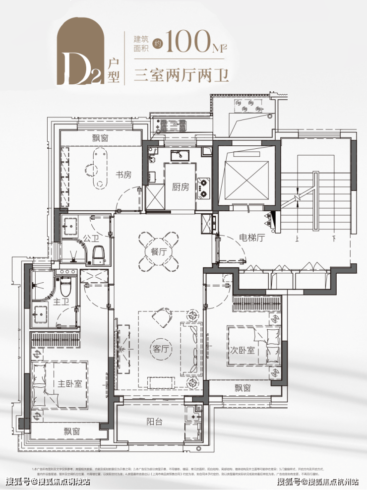 传统市面上的百平户型,通常只能做极窄的厅堂,或是直接省去第三个房间。