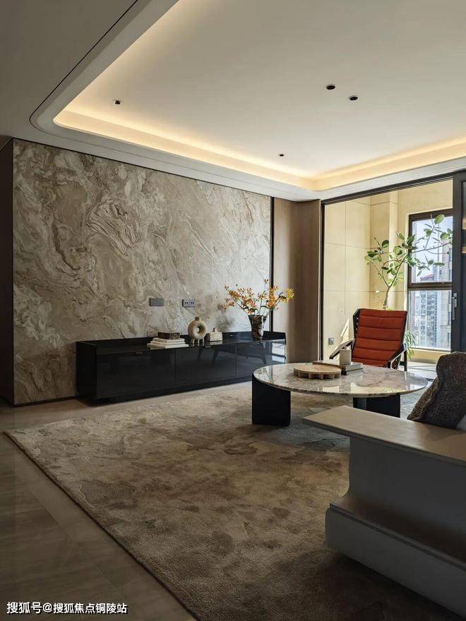 客厅区域的面宽达到了约4.5米的尺度感,在三房里是非常少有的。