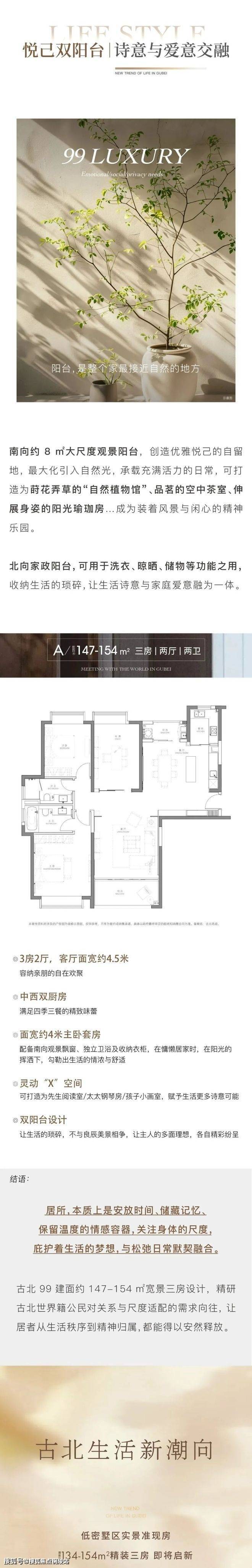 【古北99售楼处电话:400-9699-334✨【官方认证】✅✅✅】由平层和联排别墅组成,建面约133-154㎡精装平层,&建面约300/419㎡联排别墅。高层总高15-19层,层高3.015米,133㎡两房,150-154㎡三房, 顶复237-299㎡;