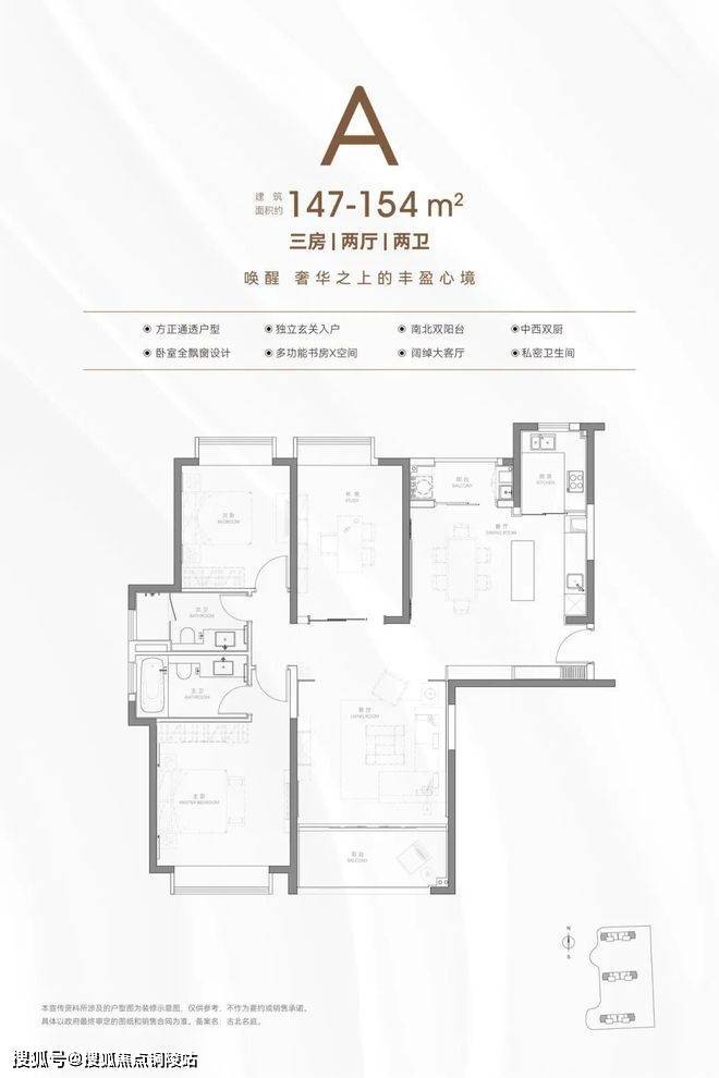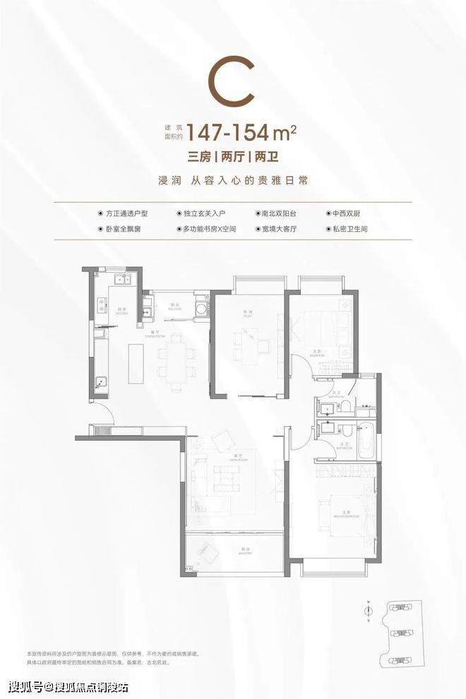 这次供应的主力户型是3个,一个是约150、154㎡左右的大三房两卫;另一个则是134㎡的3房两卫的中间套,在户型图上可能看不出,这个3房的尺度感非常惊人。