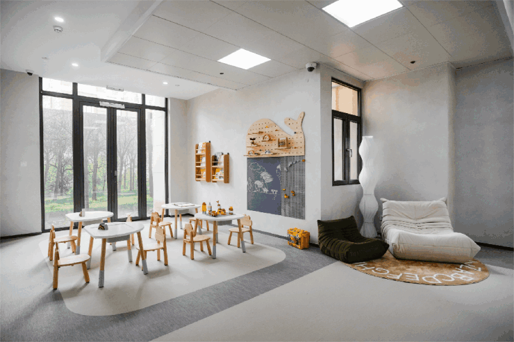 社区架空层还配置泛会所,设四点半课堂、儿童娱乐区、乒乓房篮球场、休闲会客厅等全龄生活配套,雨天也有专属活动空间。