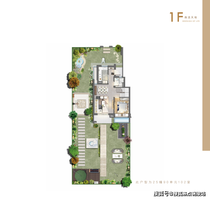 该户型为下叠边套户型,三层独立功能空间,精装交付,满足业主们对墅居生活的无限想象。