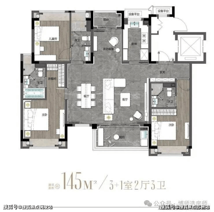 (二)建面约125-145㎡四房两厅两卫:改善主力,四叶草布局,全龄宜居