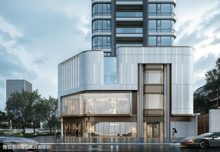 大华·静安年华将新古典与邬达克美学融合,借鉴了外滩华尔道夫、国际饭店等经典海派建筑的曲线、拱形、色彩等元素,并通过现代创新艺术材料,将之呈现在这座高层的外立面上。