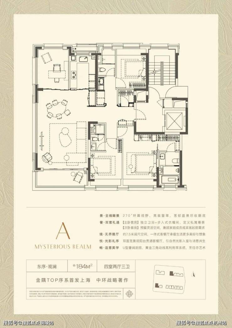 184㎡ 4 房 2 厅 3 卫:270° 公园景观、双套房、独立电梯厅、大横厅,终极改善。