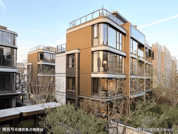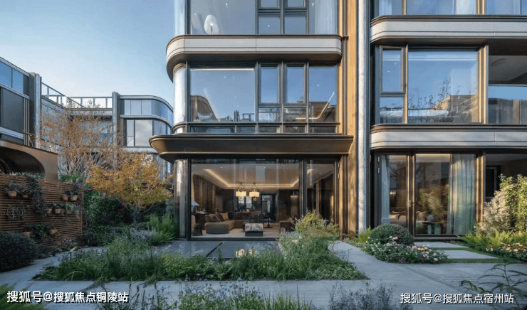 建筑外立面采用现代简约风格,融合海派摩登元素,搭配金属扣板、高端石材与真石漆,线条简洁流畅,质感高级大气,历久弥新。大面宽玻璃窗设计,不仅提升采光与观景效果,更让建筑与自然景观完美融合,彰显高端住区的美学气质。