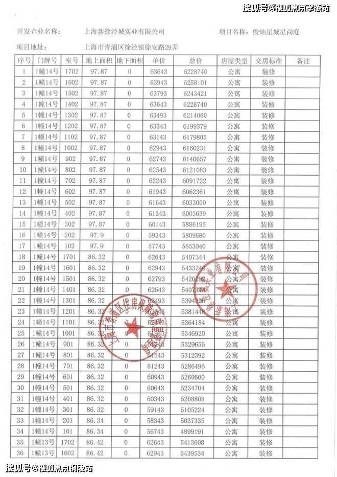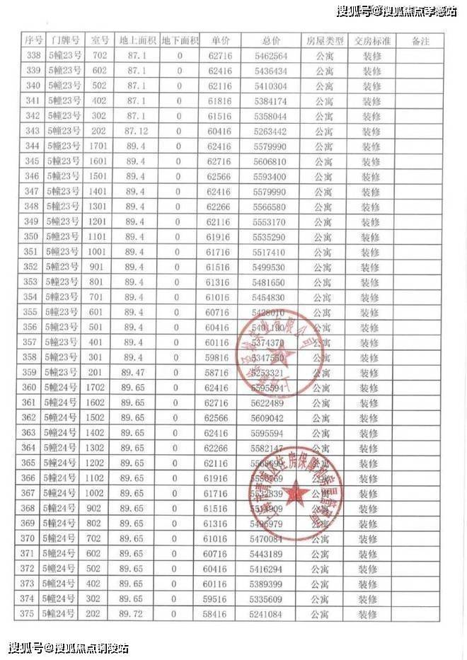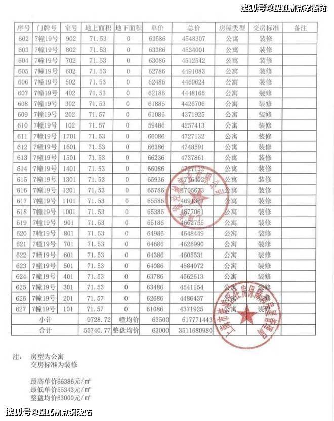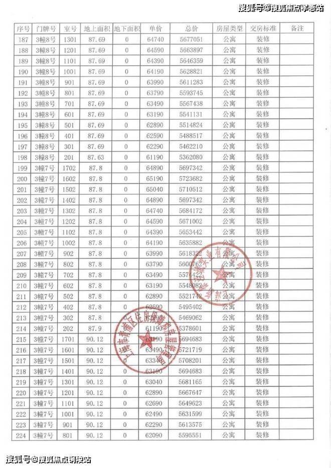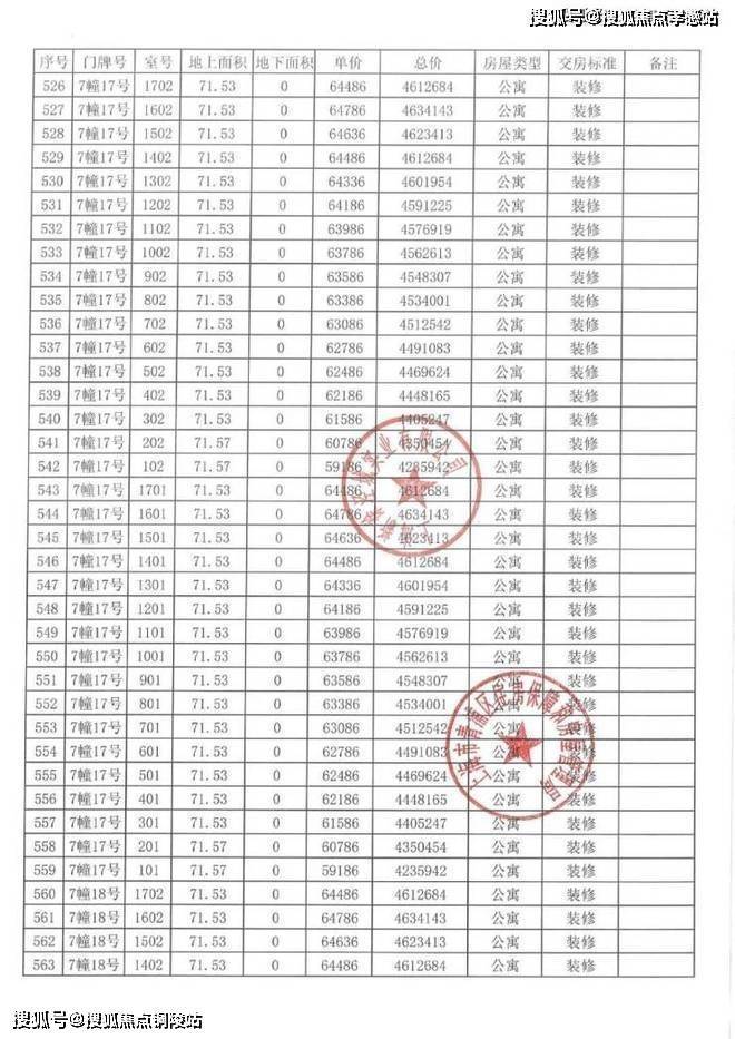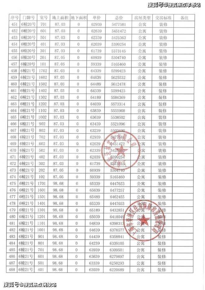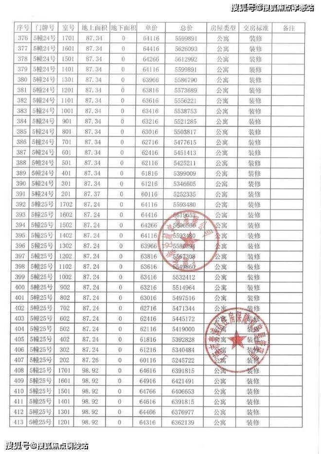 以下为项目完整一房一价表