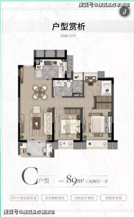 建面约89㎡三房