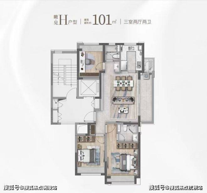 建面约101㎡的F和G户型都是市面上备受认可的飞机经典款户型。