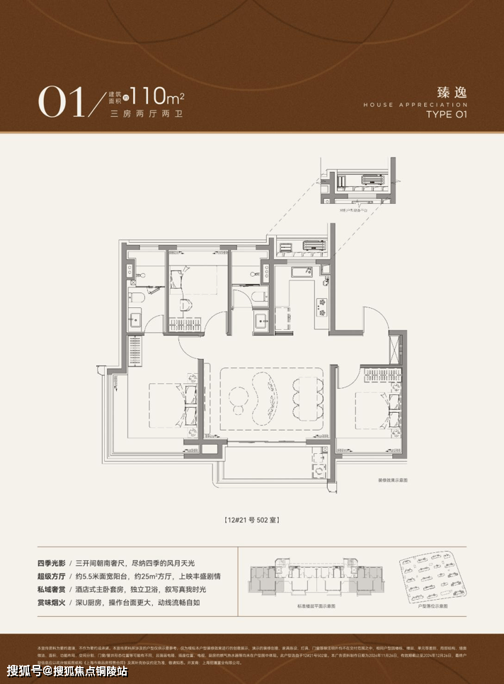在建面约110㎡ 户型已有的两点之上再度升级,简约面144㎡户型更加匹配三代同堂、二胎之家。