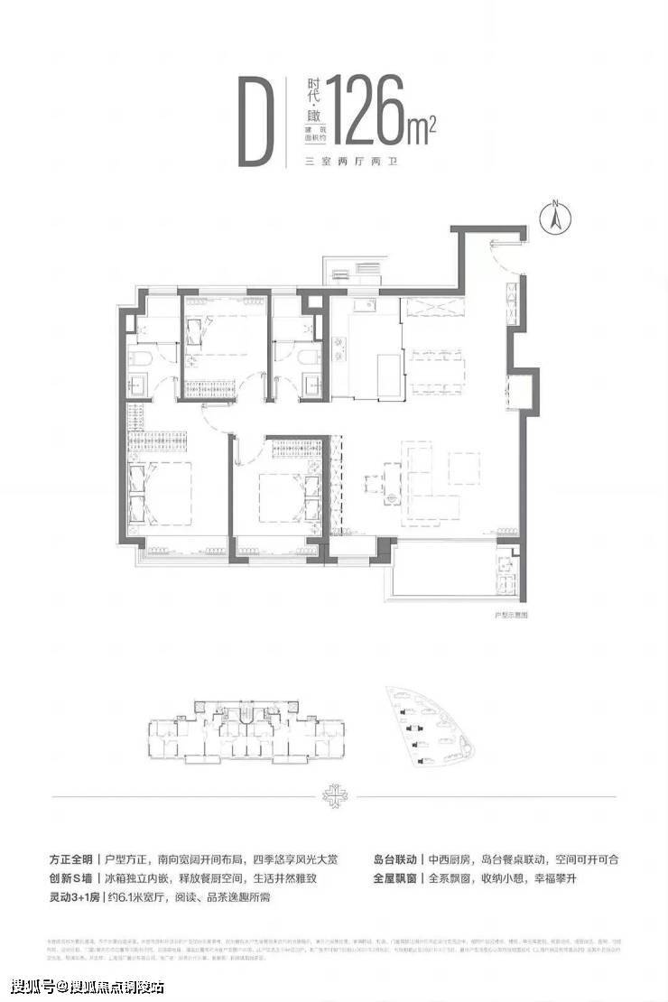 建面约126平的三房两厅两卫,在这个面积上做横厅大三房,整体的空间感和尺度感很不错,适合改善型家庭。