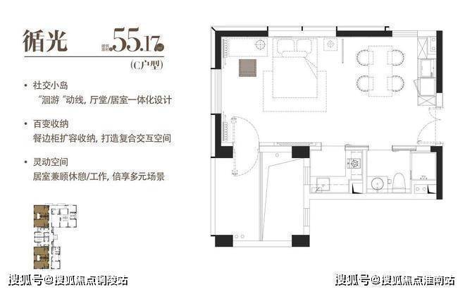 A|循光|建面约55.17m²|一室一厅一厨一卫