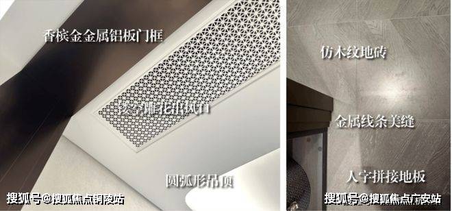 还打造了海派雕花出风口、卧室地面鱼骨拼接、卫生间地面复古拼花、香槟金金属铝板门框、金属踢脚线等元素,整个海派美学居住空间精致有腔调~