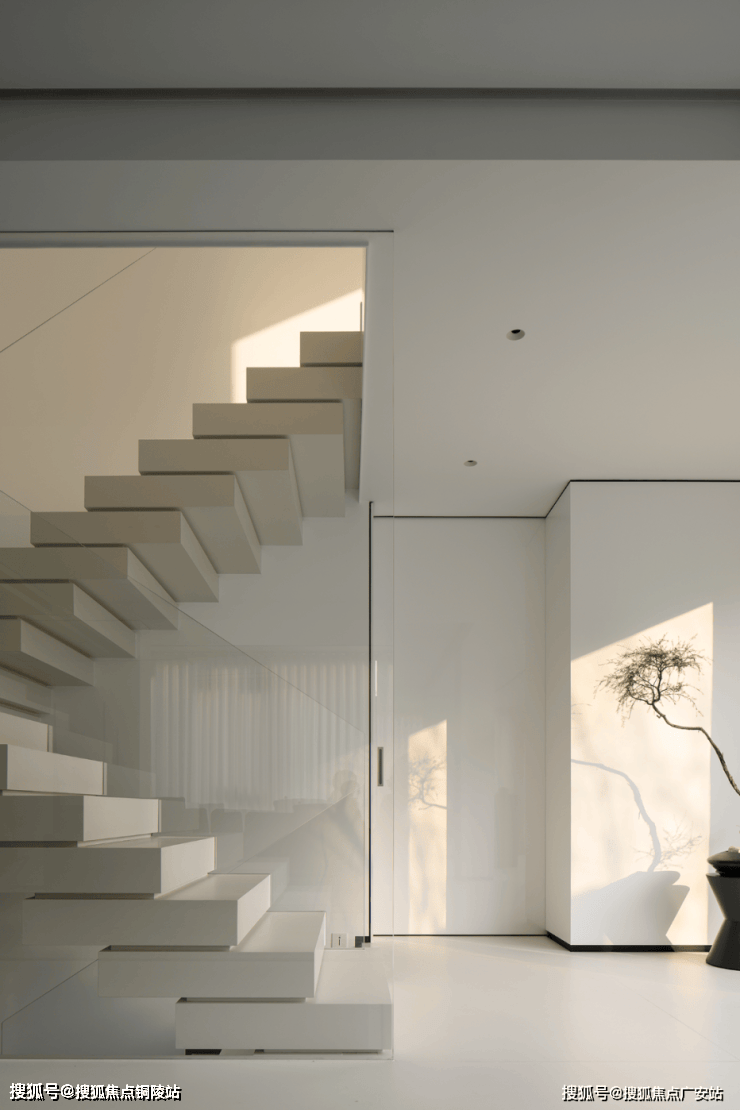 楼梯区完全被几何占据,自然光恰到好处的平衡,进一步呼应着空间的心境,衔接了生活和居所。
