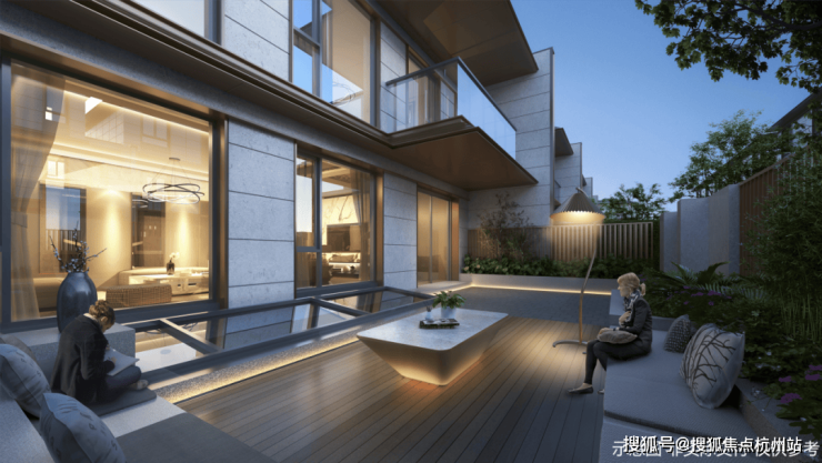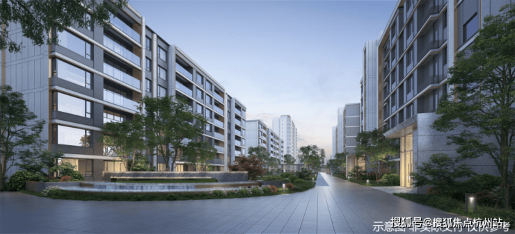 中央水景联动地面景观及地下会所空间,通过三层叠水形成了特色鲜明的水景庭院,引领未来社区发展新趋势。