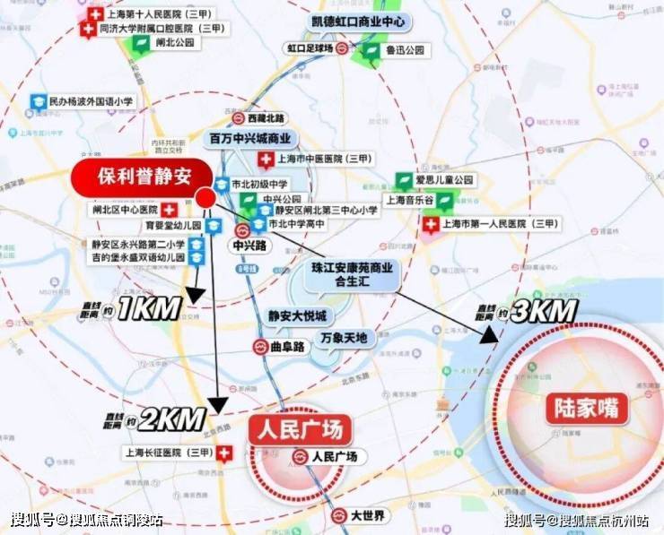 1公里范围内有静安大悦城、万象天地、凯德虹口商业中心、百万中兴城商业(在建中)、珠江安康苑的商业合生汇(在建中)等大型商场。