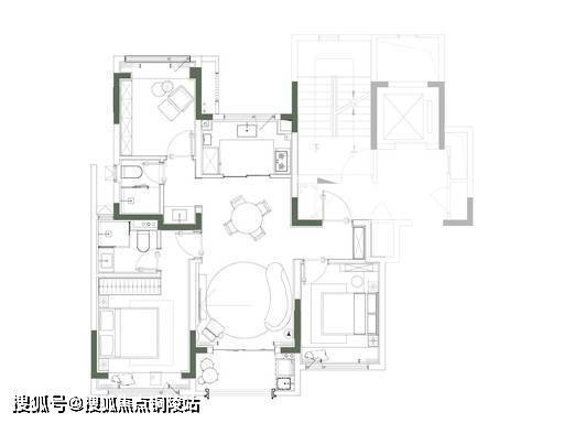 143㎡ 4 房 2 卫:南向面宽 12.5 米、四开间朝南、双套房设计。