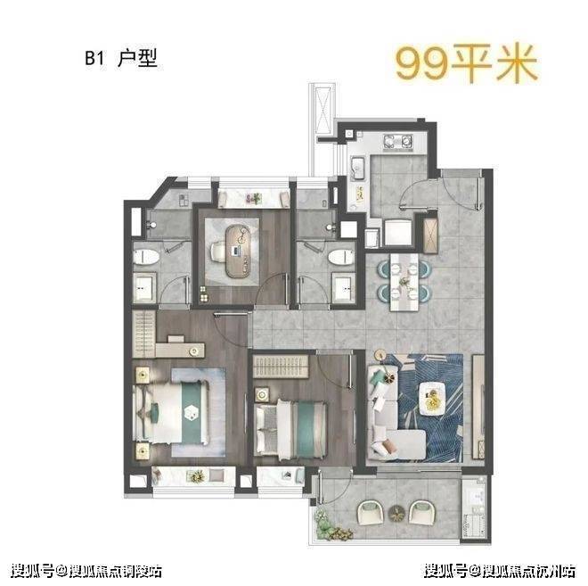 以 99㎡三房两厅两卫户型为例,客餐厅连接景观阳台,采光面更大,为日常生活带来更多舒适感,双卫设计更为生活增添便利。105㎡三房两厅两卫户型,客餐厅与阳台一脉相连,居住空间感进一步扩大,约 5.1 米的宽厅,无论是日常休憩还是会客,都尽显大方得体。此外,项目中央空调、地暖、新风三大件配套齐全,且臻选大金等同级品牌空调地暖、老板和方太等同级品牌厨房配备、摩恩、弗兰卡、科勒等同级品牌卫浴配备 ,每一处细节都彰显着对居者的用心,为您打造高品质的居住环境。