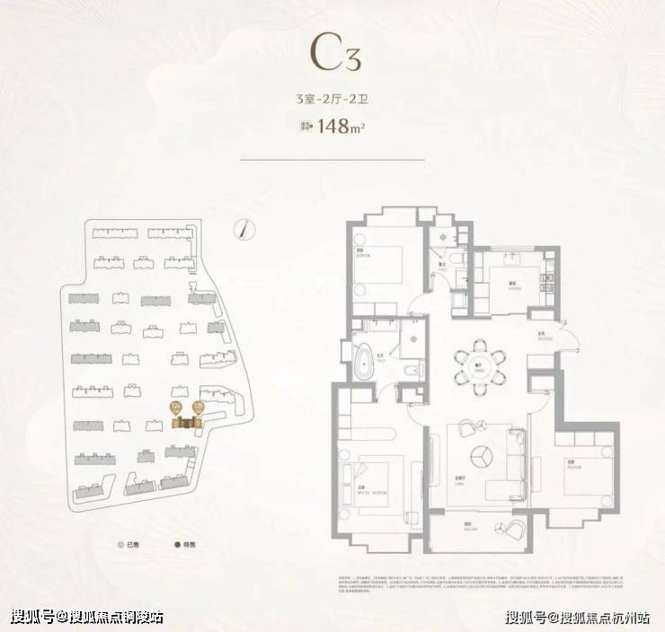 项目一期房型均呈现大开间、短进深的特点,主力房型为131㎡3房,占到一期总量的70%,其余房型为100㎡2房,155㎡3房,175㎡4房。项目一期于2022年11月入市,推出621套房源(C区),总认购1400+组,认购率225%,入围分55.28,开盘售罄!