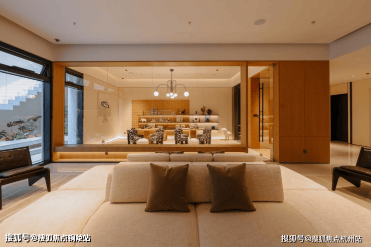 再看目前呈现的C区组团会所,木色风格和考究光线的运用让空间感非常强,搭配外部下沉式小广场的绿植阳光等,形成了通透考究的第二会客厅。而从内部布局来看,极具艺术感的装饰提升了整体的档次,友邻交流、亲子阅读、对话品茗、健身运动等需求随时满足,生活氛围浓郁。