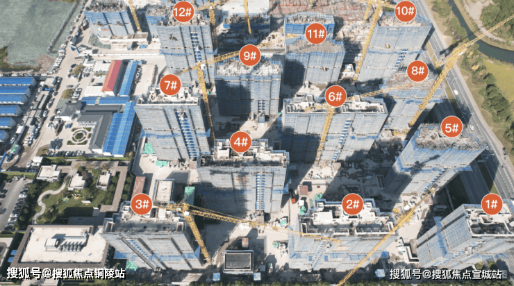 目前1#、2#、3#、4#、6#、7#结构均已完成,5# 15层墙柱施工中,16层梁板施工中;8# 13层墙柱施工中;9# 12层柱子合模;10# 屋面层施工中;11# 9层顶板施工中;12#花架浇筑!