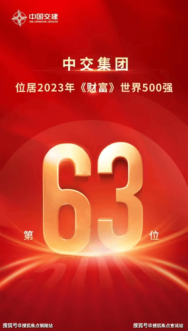 2023年《财富》世界500强排行榜揭晓,中交集团以1382.70亿美元营业收入排名第63位!中交集团已连续16年荣登该榜单!