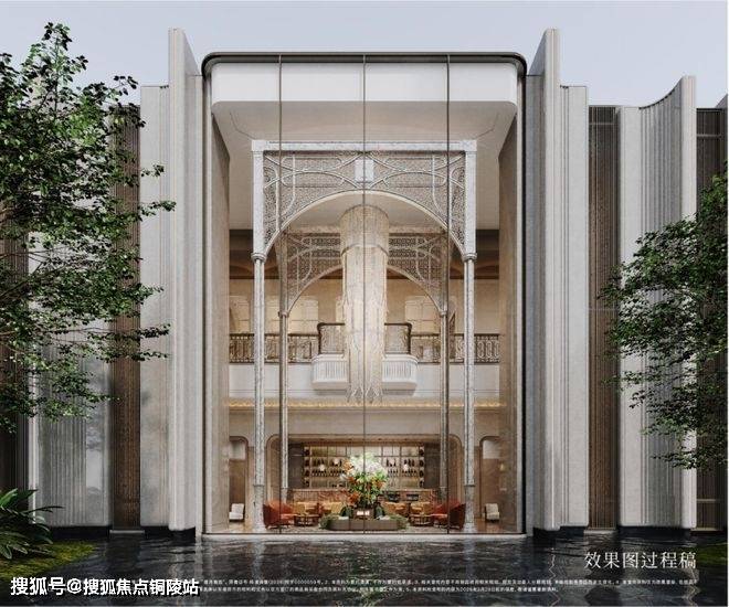 在建筑表达上,深度萃取巴黎白马庄园(Cheval Blanc Paris)核心美学,同时融合上海花园饭店、和平饭店、张园石库门等东方海派建筑元素,以“仪式感、纯粹性、细节感”为核心,打造兼具国际风范与海派底蕴的建筑格调仪式感上,对称式布局搭配精致雕花纹饰,入户动线仪式感拉满;