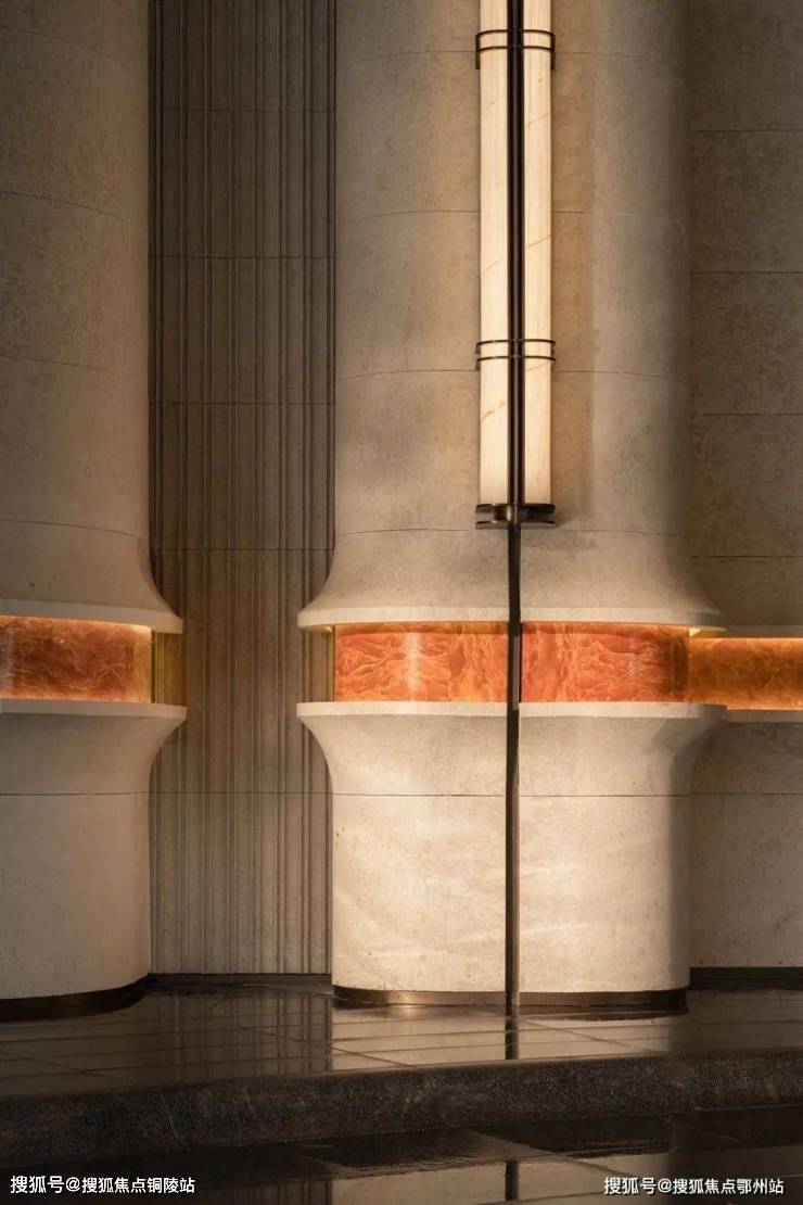 大量的艺术定制,让招商序化作耐人欣赏的艺廊。大门墙面橙皮红腰线定制,与沉香米黄石材形成鲜明撞色,仅这一项石材打磨,耗费就近百万;