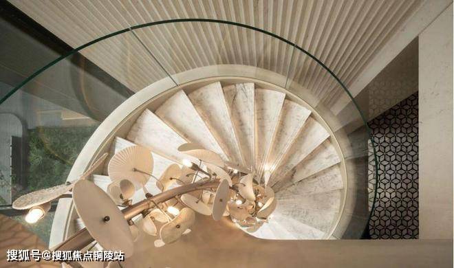 建面约170㎡户型的1楼入户大堂也非常气派,地面是大理石拼花,墙面是花岗岩,弧形吊顶+隐藏射灯,整体形成了低调隐奢的感觉。