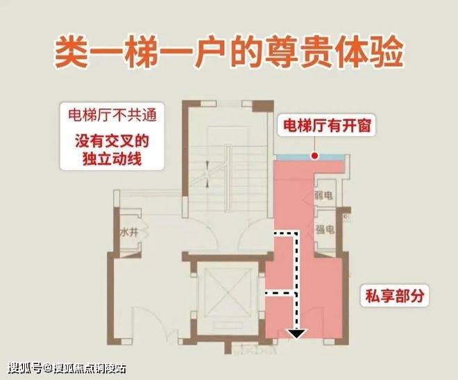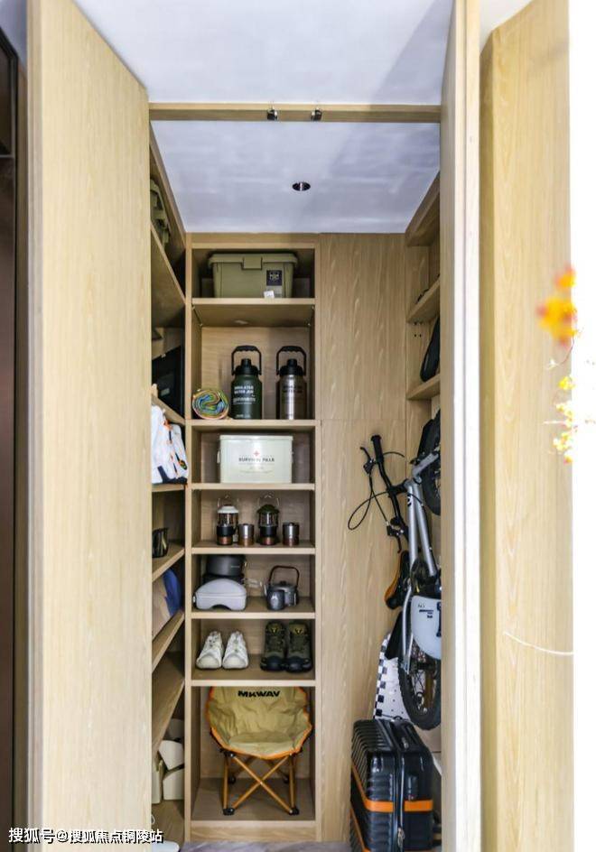 该户型采用电梯双开门的类一梯一户设计,既保障了高得房率,又实现了公区私有化效果,提供了额外的套型外储藏空间。