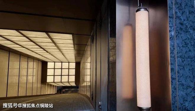 内部顶面为蜂窝铝板与格栅,线性灯带营造酒店式仪式感。