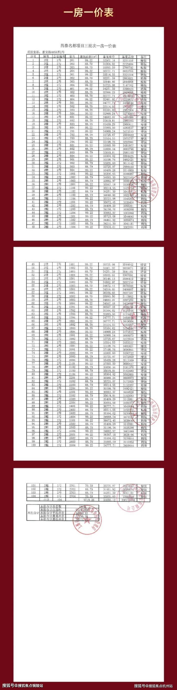 项目一房一价表▼