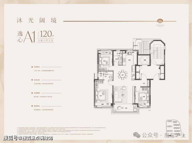 户型特点:边套户型,3开间朝南,方正格局。客餐厅一体化设计,餐厅空间宽敞,客厅进深较短但可通过与阳台连通优化空间感。全屋飘窗设计,边套南北卧室为270°转角飘窗,采光充足。独立电梯厅约7-8㎡,可改造为玄关或收纳空间。