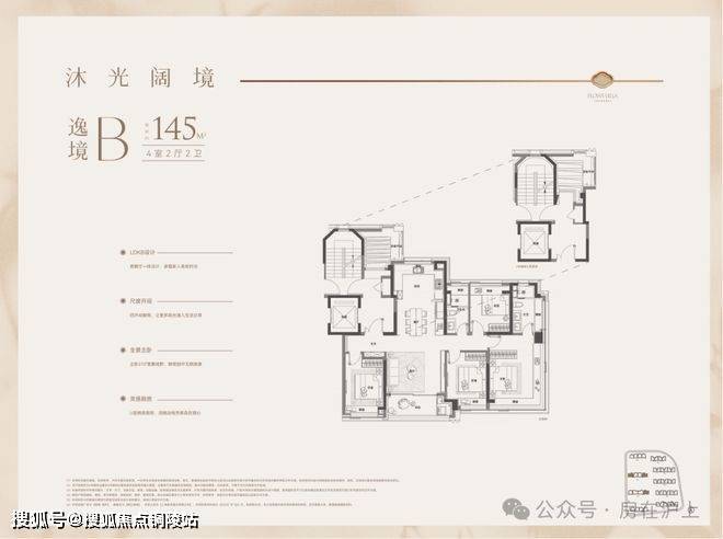 户型特点:4开间朝南,LDK一体化设计,南北通透。客厅面宽达4.3米,外接4.8米长阳台,采光通风俱佳。主卧带270°转角飘窗,主卫也有飘窗赠送。全屋飘窗设计,独立电梯厅,私密性与尊享感强。
