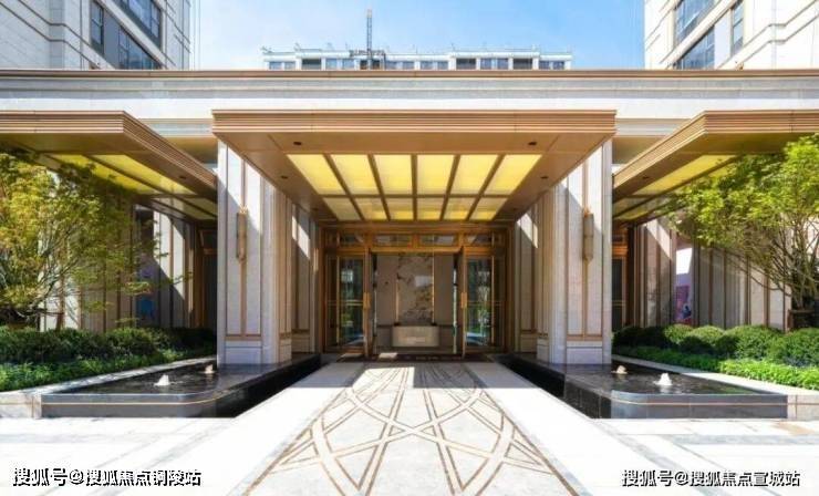 从项目南入口,穿越前厅的潺潺水景,便是与社区建筑完美融合的门厅大堂,其设计简约而不失精致,摒弃繁复细节,彰显出新海派独有的高雅格调。