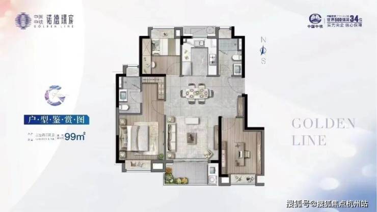 中铁诺德•璟宸有三种户型:约89平的三房两卫,约99平的三房两卫,和约129平的四房两卫。