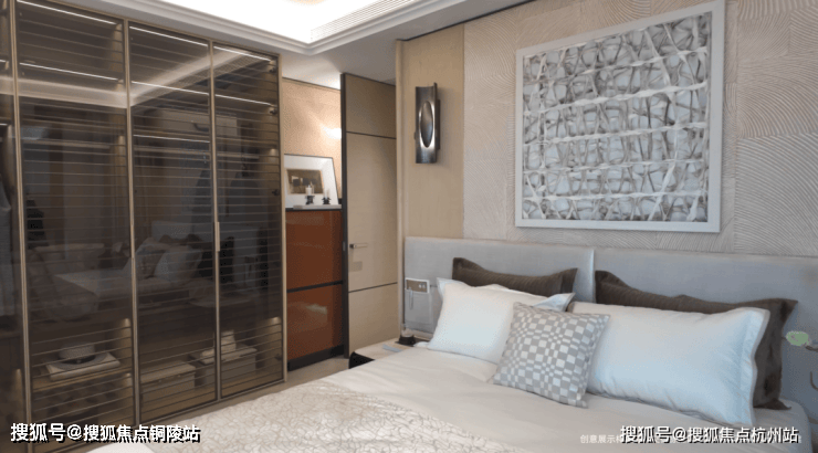 主卧套房面宽约4.8米,采用酒店式配置,配备独立卫浴与超大飘窗,尺度与舒适度俱佳。