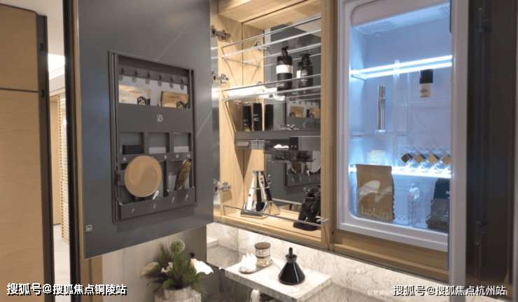 主卫空间更是升级为私人美学沙龙,配备科勒维C美研龙头,具备过滤余氯与微气泡洁面功能;奥普光子嫩肤浴霸让沐浴同时兼具护肤效果。再结合美妆冰箱与镜箱,共同构成独特的“美颜四件套”,悉心呵护日常仪容。