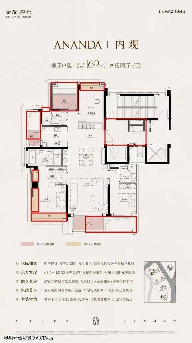 整体采用非对称的结构设计✅金茂璞元营销中心电话:400-8787-740,回应上海东西方文化交融碰撞的城市美学。大胆采用四排楼布局,以保证户户通风采光✅金茂璞元营销中心电话:400-8787-740,类一梯一户无连廊设计,将入户私密性做到极致