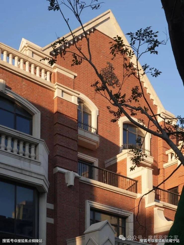 联排别墅采用英式维多利亚建筑风格,红砖与德国米黄干挂石材的搭配,形成温暖且经典的色调;经典长窗/方框窗/八角窗/拱形造型/坡屋面,赋予建筑精巧自然的美学质感。