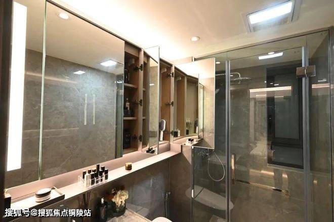 最后值得一提的是,项目还有很多个性化定制设计,包括防雾镜、美颜灯、电热毛巾架、岛台轨道插座(约93㎡户型)、预留美妆冰箱等。