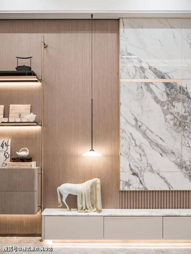为此项目精选钢木复合门、臻选雅艺壁布、自然木饰面、全景一体化岩板背景墙等精奢材质,搭配充满仪式感的氛围灯带、打磨移门、踢脚线、过门石等每一处细节。同频全球当代极简审美的艺术美宅呼之欲出!