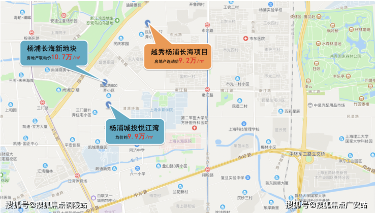 两个月后的5月28日,杨浦长海板块再次出让新地块,该地块房地联动价为10.7万元/㎡,较越秀杨浦长海地块联动价上涨1.5万元/㎡,由北京城建以4.98亿元的价格竞得。比如年初开盘的新房杨浦城投悦江湾单价9.9万/平