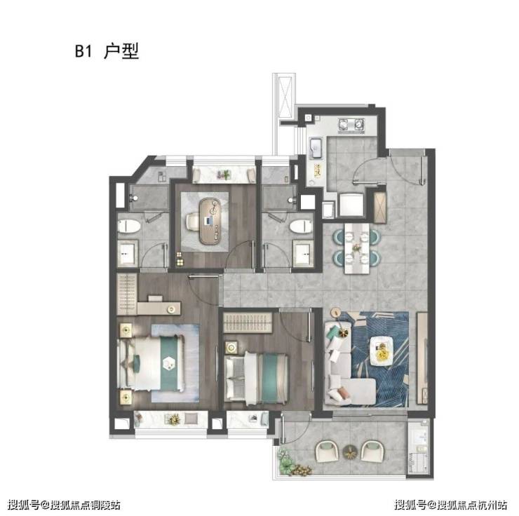 建面约105㎡3房2厅2卫