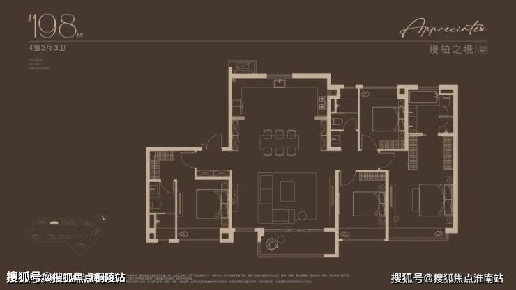 项目主力产品为建面约105–198㎡的精装3-4房大平层,全系户型均突破传统刚需尺度,主打“纯改善”居住体验。