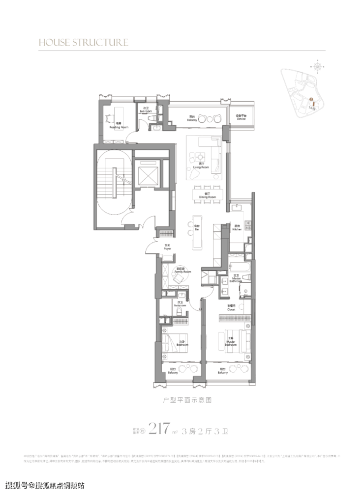 217㎡3房:总价约3100-3300万