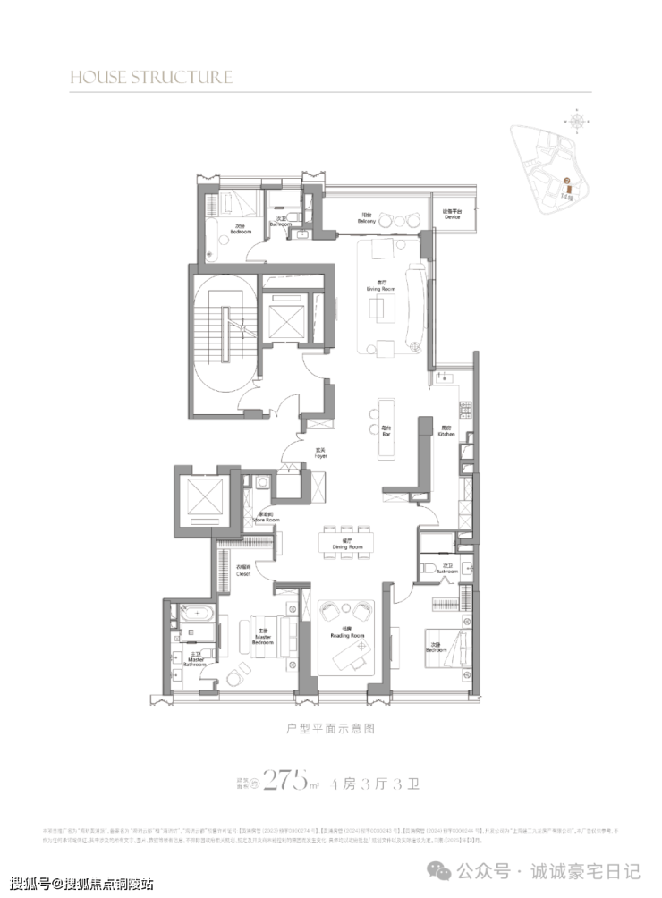275㎡4房:总价约3950-4380万
